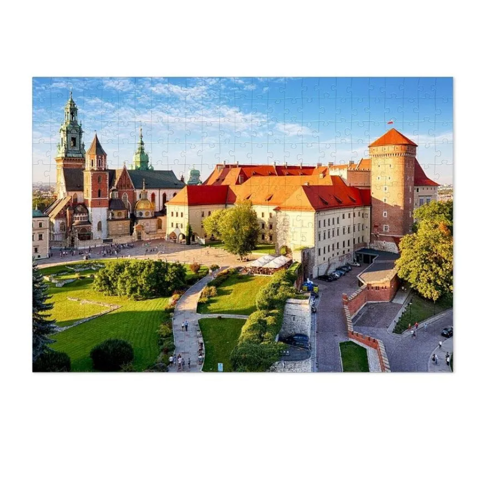 Puzzle Dodo miasta to 350 elementowe układanki przedstawiające najpopularniejsze miejsca Polskich miast. Puzzle „Kraków” przedstawiają Zamek Królewski na Wawelu. Wymiary obrazka po ułożeniu: 47x33 cm.