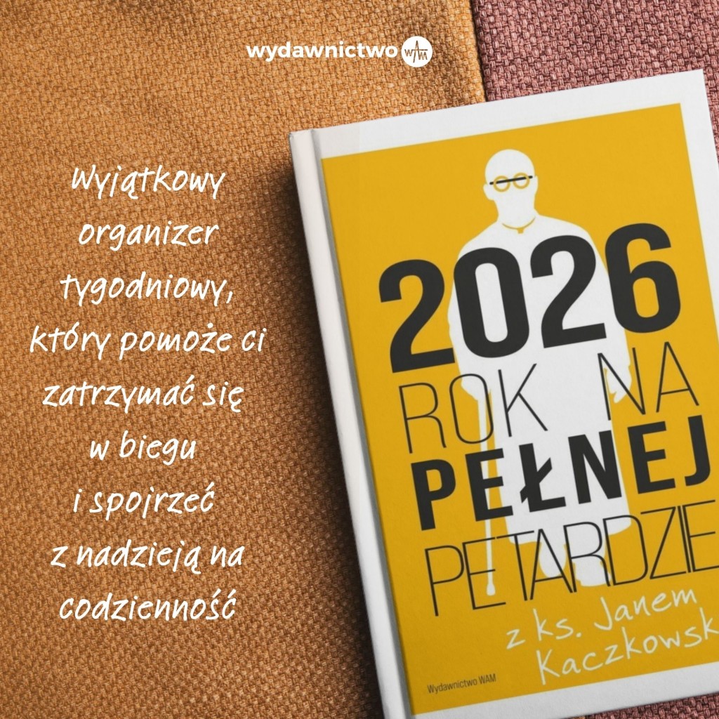 Kalendarz 2026. Rok na pełnej petardzie z ks. Janem Kaczkowskim to wyjątkowy organizer tygodniowy, który pomoże ci zatrzymać się w biegu i spojrzeć z nadzieją na codzienność. Znajdziesz w nim:
