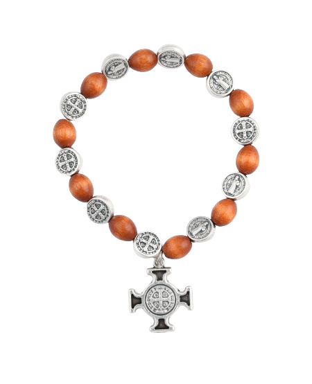 Bransoletka składa się z medalików św. Benedykta oraz drewnianych koralików. Medaliki św. Benedykta wykonane są z metalu, koraliki z wysokiej jakości drewna.