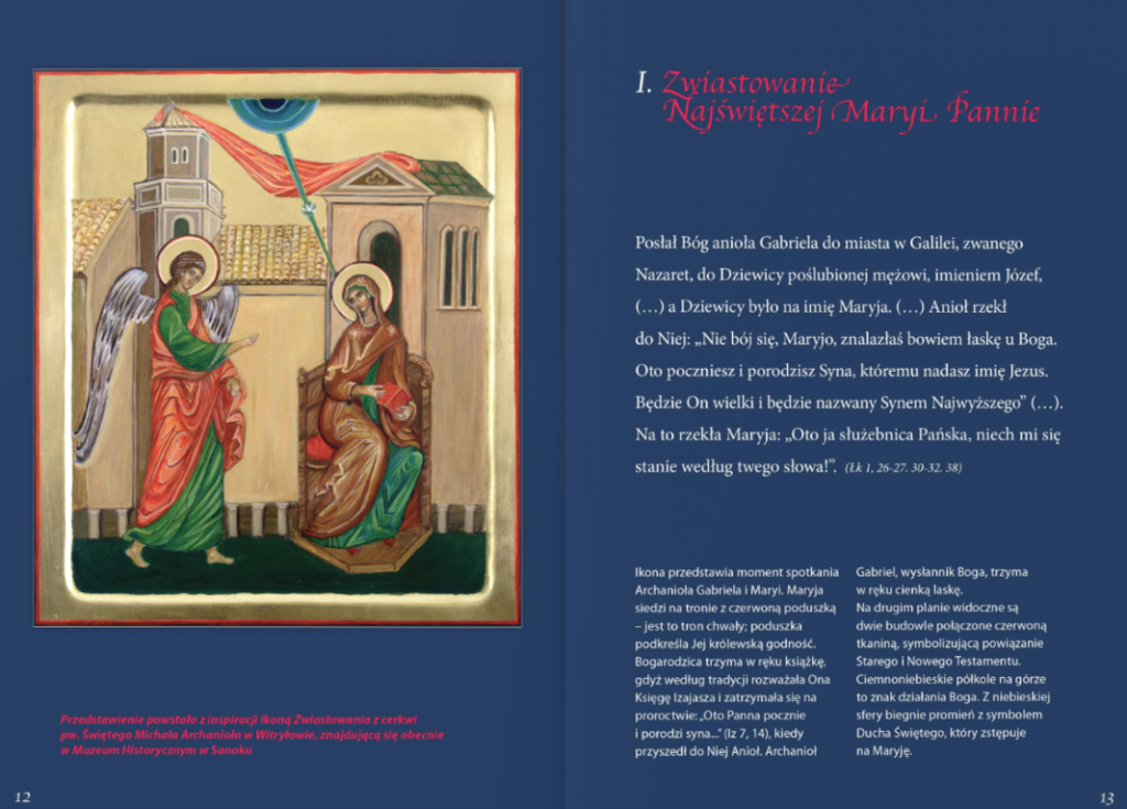 W różańcu nasze życie splata się z życiem Matki Bożej. Sytuacje z codzienności stają się jakby odbiciem wydarzeń ewangelicznych. Idziemy drogą Maryi, kroczymy Jej śladami – to nam daje odwagę, uwalnia od lęku… W ten sposób modlitwa różańcowa, która jest łącznikiem między niebem a ziemią, staje się siostrą ikony, nazywanej oknem ku wieczności. Czasem, w chwilach ciężkich, kiedy nawet powtarzanie Zdrowaś Maryjo wydaje się być ponad nasze siły, wystarczy przesuwać wzrok z jednej ikony na drugą, by w ten sposób złączyć swoje życie i swoje cierpienie z życiem Jezusa i Maryi. Zawsze odnajdziemy się w którejś z tajemnic.