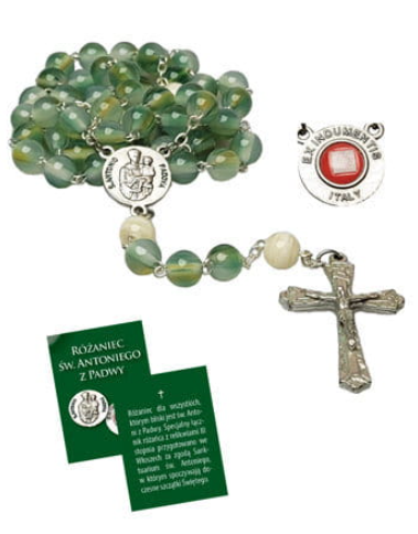 Różaniec dla wszystkich, którym bliski jest św. Antoni z Padwy. Specjalny łącznik różańca z relikwiami III stopnia przygotowano we Włoszech za zgodą Sanktuarium św. Antoniego, w którym spoczywają doczesne szczątki Świętego.