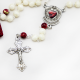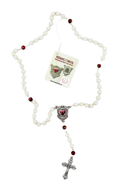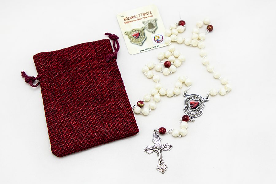 Różaniec w wygodnym jutowym etui, każdy posiada certyfikat pracowni San Gabriele.