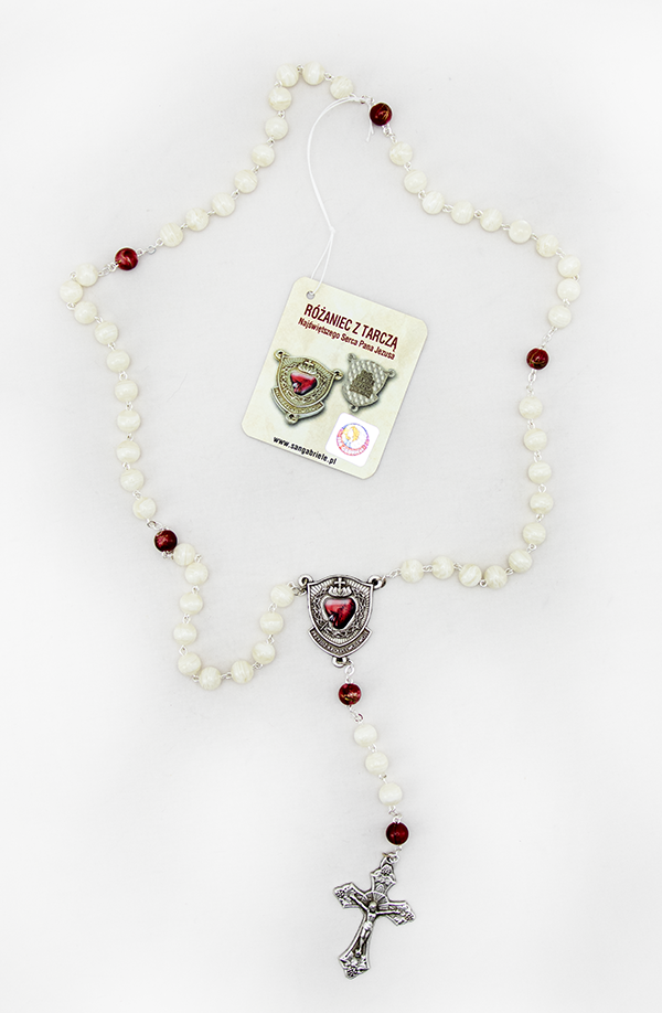 Tarcza Najświętszego Serca Pana Jezusa swój początek czerpie z objawień św. Małgorzaty Alacoque ponad 300 lat temu. Pan Jezus obiecał szczególne łaski dla tych, którzy będą czcić Najświętsze Serce, a zewnętrznym wyrazem tej czci ma być Tarcza NSPJ. Gdy we Francji szalała dżuma, inna siostra wizytka miała objawienie Jezusa. który obiecał szczególną ochron e podczas epidemii czcicielom Najświętszego Serca. Wtedy do Tarczy dodano inskrypcję "Stój, Serce Jezusa jest ze mną". Kościół dwukrotnie nadał odpust za noszenie Tarczy, a liczne świadectwa wskazują, że czciciele Serca Bożego, którzy z wiara nosili Tarczę doznawali potężnej ochrony przed chorobami, zarazą i innymi niebezpieczeństwami.