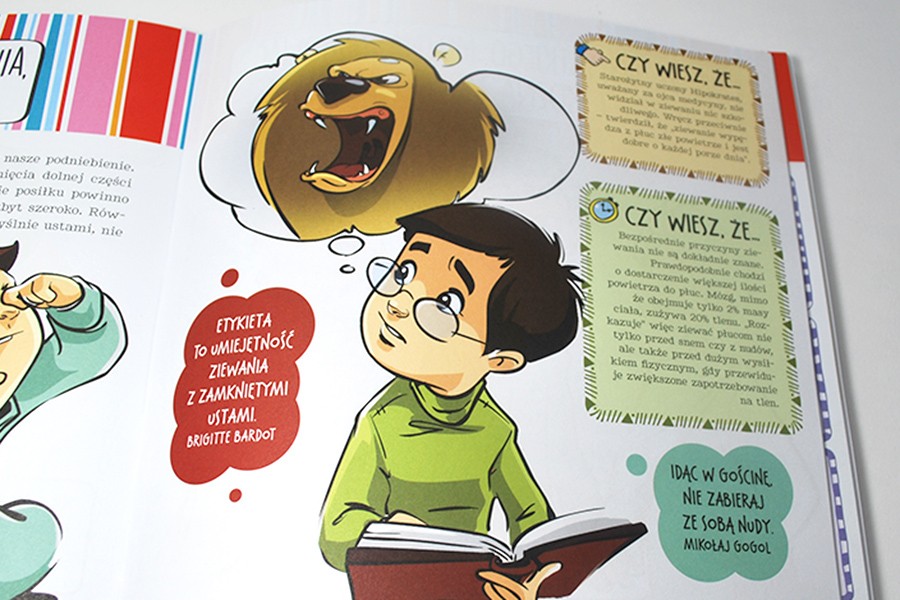 Wspaniała książka dla dzieci i dorosłych, podejmująca tematy proste i można pomyśleć – oczywiste, ale warto o nich pamiętać i porozmawiać. Ułatwiają dobre relacje w szkole, w domu, a kiedyś również i w życiu dorosłym. O powitaniach i pożegnaniach, o sztuce rozmawiania, higienie, szacunku do drugiego człowieka, punktualności, zachowaniu przy stole, na spacerze, wizytach, w podróży...