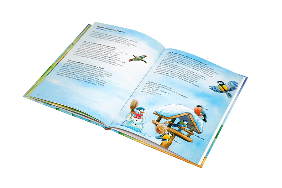 Ta wyjątkowa książka zaprasza na spotkanie z przyrodą, która nas otacza. Bliskie rzeczywistości, piękne ilustracje przedstawiające liczne gatunki rodzimych ptaków oraz przyjazny dzieciom tekst zawierający mnóstwo wiadomości to prawdziwa gratka dla małych badaczy i miłośników przyrody.