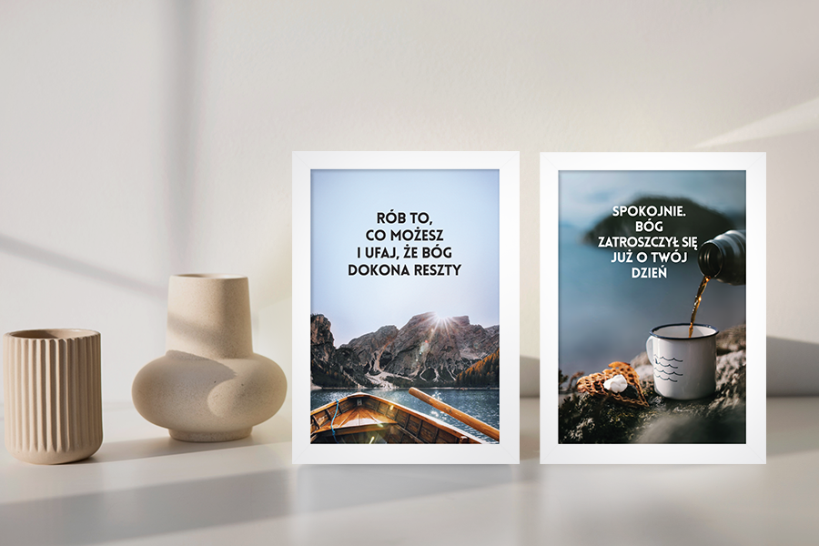 Wyjątkowy plakat z przesłaniem na każdy dzień w eleganckiej ramce w kolorze białym. Do zawieszenia na ścianie lub postawienia na biurku.