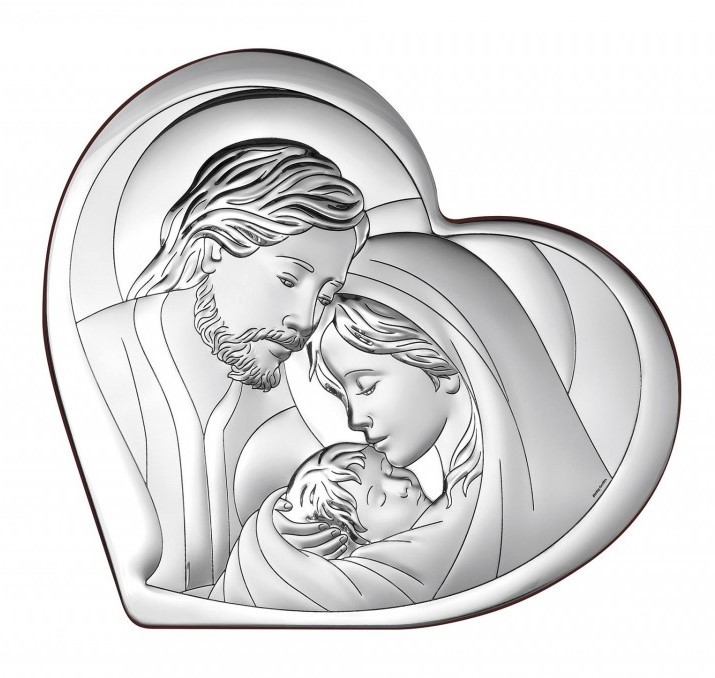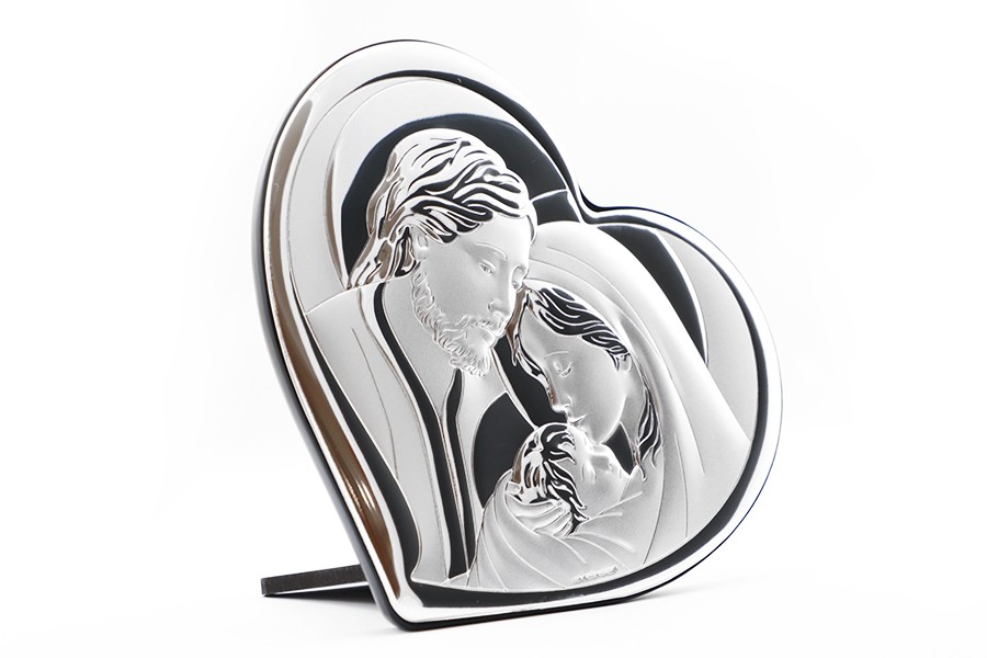 Obrazek srebrny przedstawiający wizerunek Świętej Rodziny.