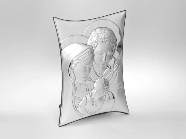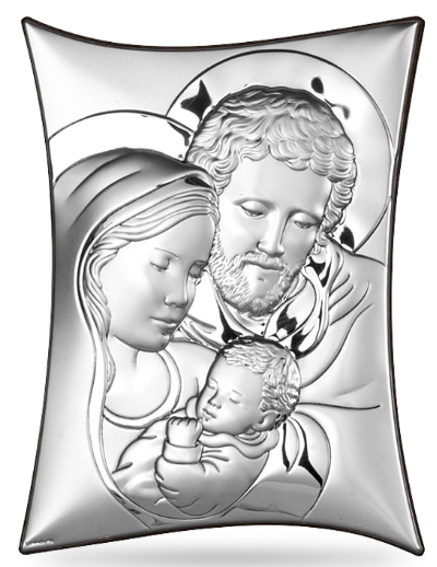 Obrazek srebrny przedstawiający wizerunek Świętej Rodziny.