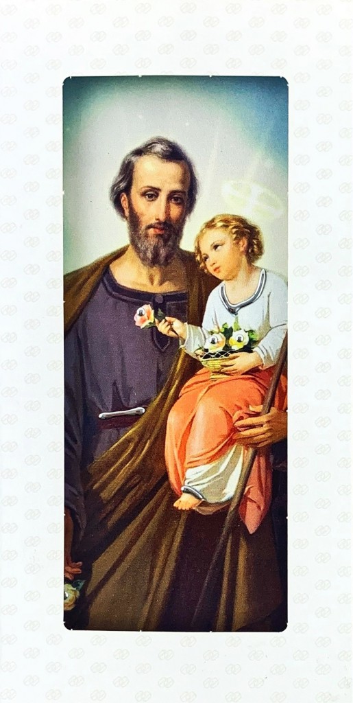 Obraz Świętego Józefa malowany na drewnie, z elementami srebrnej dekoracji, wykonanej ręcznie. Zapakowany w ozdobne pudełko.