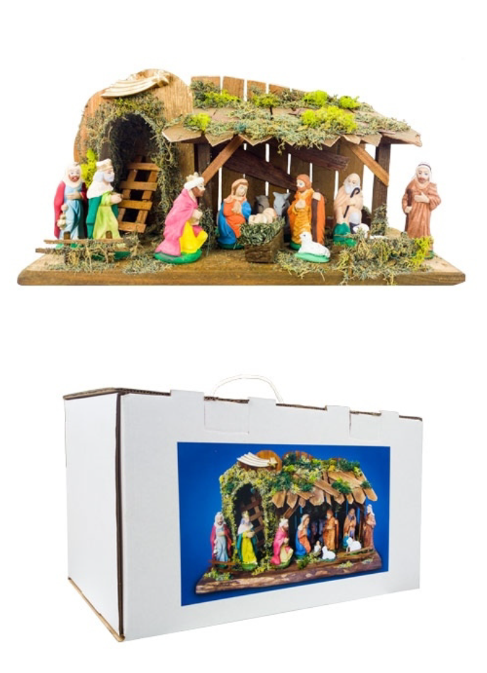 Wymiary szopki (dł. × szer. × wys.): 40×17×20 cm