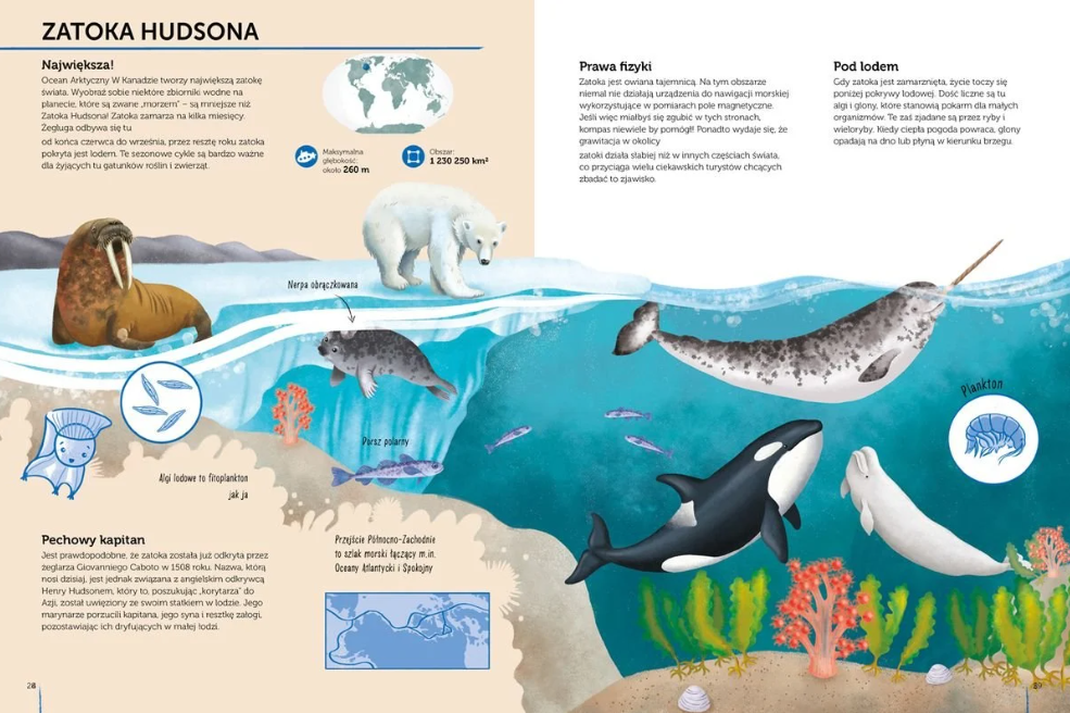 Wystarczy otworzyć ten wyjątkowy atlas, by odkrywać wraz z nami Wielką Rafę Koralową, lasy namorzynowe, Zatokę Hudsona, Rów Mariański i inne tajemnice mórz i oceanów.