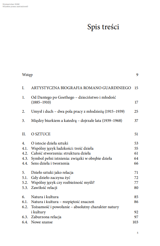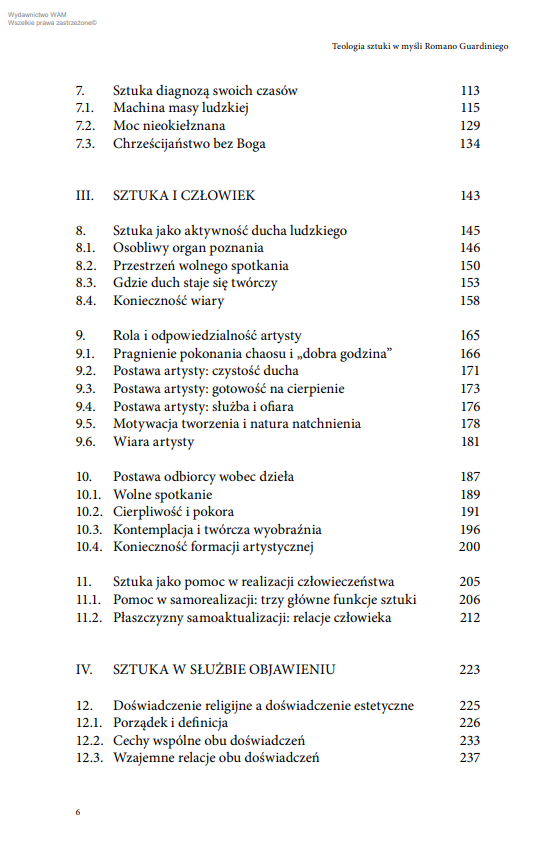 W jaki sposób sztuka może służyć rozwojowi refleksji nad Objawieniem? Jakie znaczenie dla ducha ludzkiego mają wielkie dzieła malarskie, muzyczne czy literackie? Czy wiara – lub niewiara – artysty ma wpływ na jego twórczość? Na te i inne pytania odpowiada dr Agata Rainer słowami jednej z najwybitniejszych postaci chrześcijańskiego świata XX wieku – niemieckiego teologa i duszpasterza Romano Guardiniego (1885–1968).