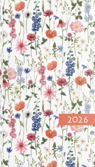 Organizer na rok 2026, papier chamois, druk wnętrza w dwóch kolorach, perforowane narożniki kartek, tasiemka, tydzień na dwóch stronach, imieniny, święta, patron dnia, informacja o liturgii dnia, myśl na każdy tydzień, miejsce na notatki, skrócone kalendarium miesiąca bieżącego, skrócone kalendarium na kolejny rok.