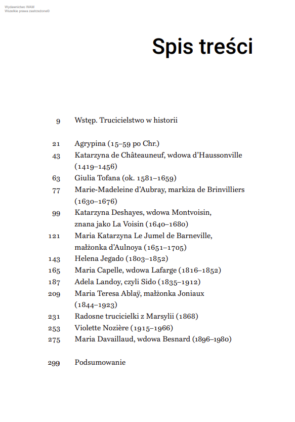 Przyglądając się historiom kobiet, które przez wieki sięgały po truciznę, dostajemy opowieść dużo bardziej niejednoznaczną, niż mogłoby się wydawać. To historia ambicji, pragnień, namiętności i desperacji. Od zbrodni ważniejsze okazują się okoliczności, w których kolejne kobiety decydowały się na ten czyn. I pytanie, które pojawia się przy lekturze, kto sięgał po truciznę z żądzy, a kto z konieczności.