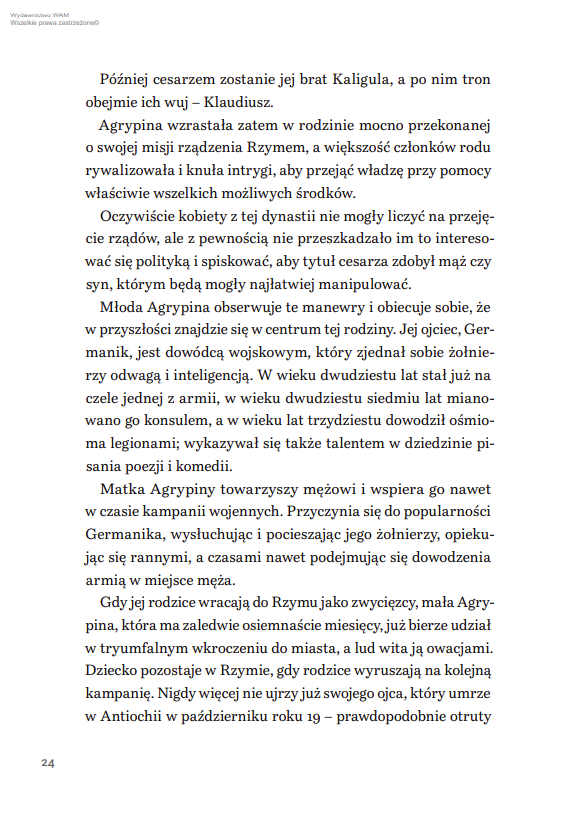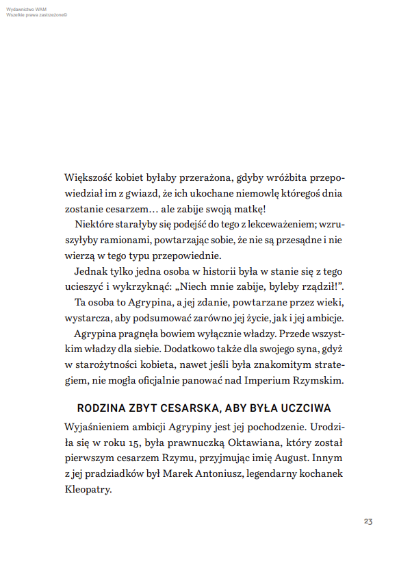 Ta książka łączy pasję historyczną z klimatem powieści kryminalnej i psychologiczną głębią portretów. Jest porywająca, sugestywna i pełna detali, które wciągają niczym najlepszy thriller. Obowiązkowa lektura dla miłośników historii, true crime i silnych kobiecych postaci, które walczyły o władzę, bezpieczeństwo i niezależność w świecie zdominowanym przez mężczyzn.