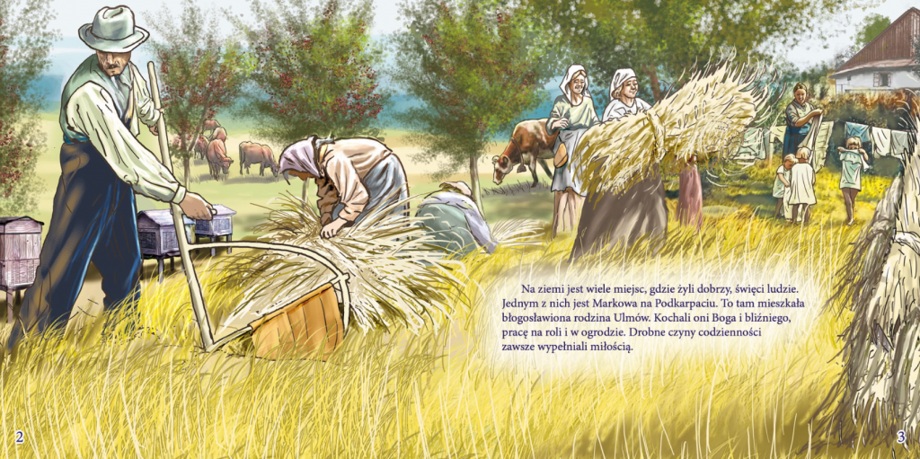 Na ziemi jest wiele miejsc, gdzie żyli dobrzy, święci ludzie. Jednym z nich jest Markowa na Podkarpaciu. To tam mieszkała błogosławiona rodzina Ulmów: mama Wiktoria, tata Józef i ich dzieci: Stasia, Basia, Władzio, Franio, Antoś, Marysia i jedno, którego nie poznamy – Nienarodzone. Każdy członek tej wyjątkowej rodziny miał swoje marzenia i ulubione zajęcia. Uwielbiali wspólnie spędzać czas, dbali o swój dom i ogród, ale przede wszystkim lubili i kochali siebie nawzajem!