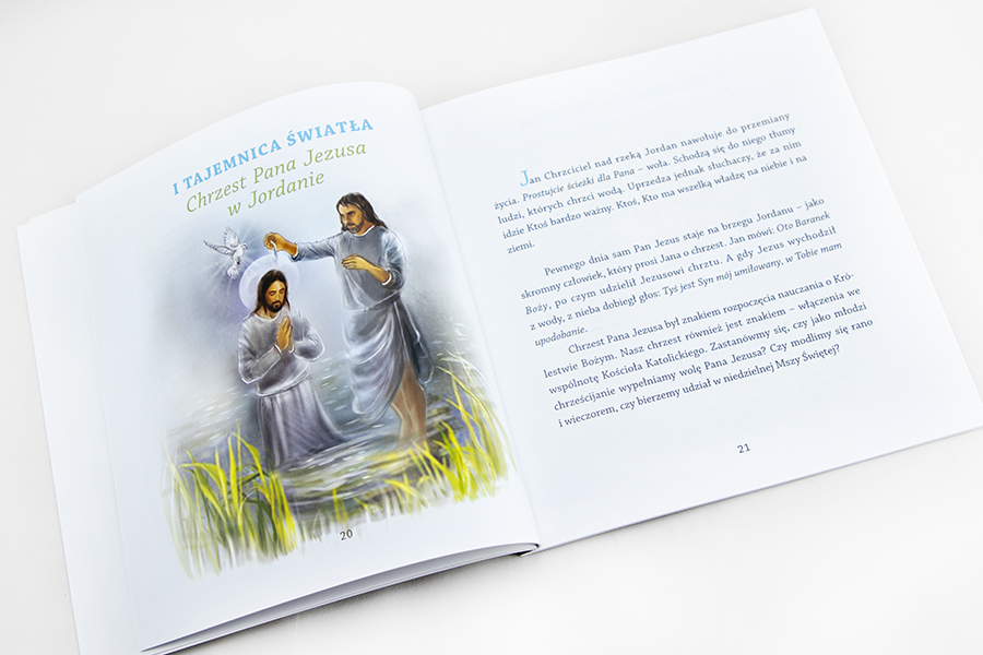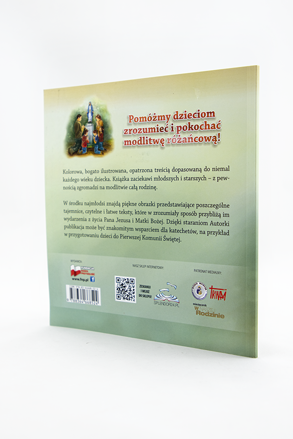 Kolorowa, bogato ilustrowana, opatrzona treścią dopasowaną do niemal każdego wieku dziecka. Książka zaciekawi młodszych i starszych - z pewnością zgromadzi na modlitwie całą rodzinę. W środku najmłodsi znajdą piękne obrazki przedstawiające poszczególne tajemnice, czytelne i łatwe teksty, które w zrozumiały sposób przybliżą im wydarzenia z życia Pana Jezusa i Matki Bożej.