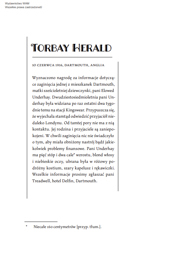 Doskonała powieść dla wielbicieli Agathy Christie, retro kryminałów, klimatycznych zagadek i niebanalnych bohaterek.