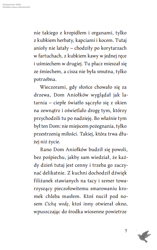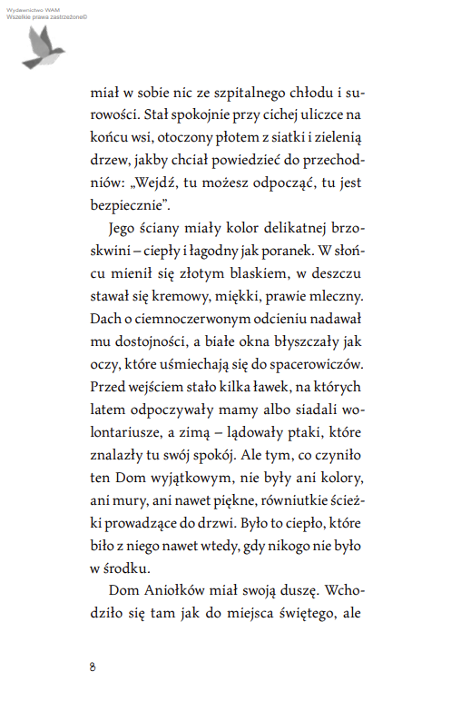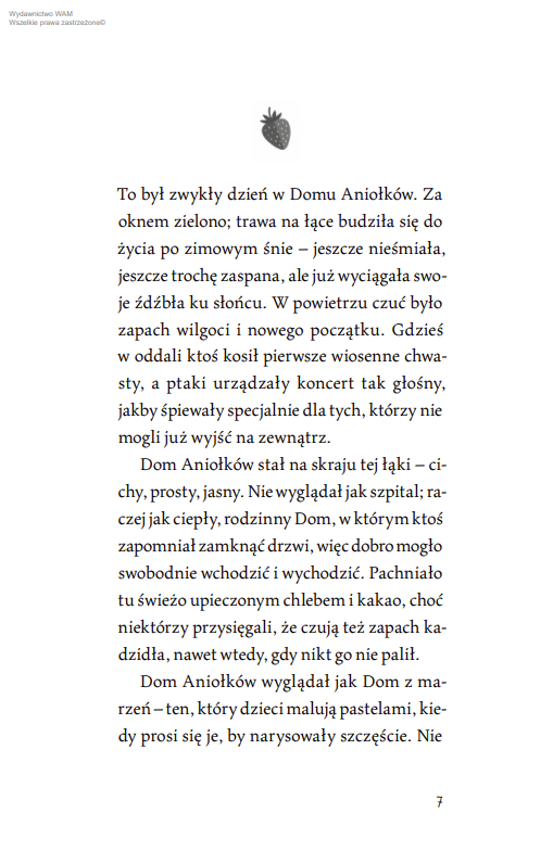 Odkryj miejsce, gdzie zapach truskawek, dziecięcy śmiech i niedoskonały makaron sklejają pęknięte serca lepiej niż najpiękniejsze modlitwy. W którym anielskie piórka pojawiają się czasem zupełnie niepostrzeżenie, na parapecie, na dłoni, w zwykłym dniu, jakby Ktoś z góry chciał dać znak: „Jestem tu”. Wsłuchaj się w opowieść o miłości tak zwyczajnej, że aż świętej. Poznaj Zosię, dziewczynkę, która potrafiła uwierzyć w coś więcej, niż dorosły jest w stanie zrozumieć…