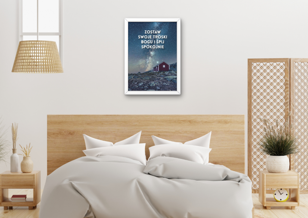 Wyjątkowy plakat z przesłaniem na każdy dzień w eleganckiej ramce w kolorze białym. Do zawieszenia na ścianie lub postawienia na biurku.