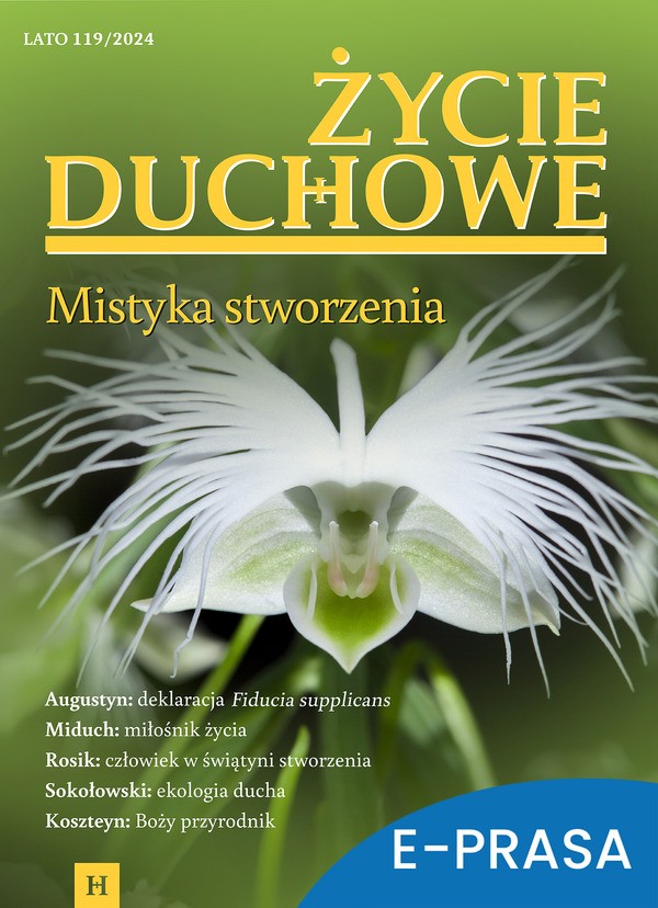 W numerze prezentujemy też spojrzenie na świat wybranych świętych żyjących przed wiekami i ludzi nam współczesnych, których podejście do stworzenia i troski o nie pozostaje cały czas aktualne i może być cenną wskazówką w działaniach na rzecz ekologii, w tym także ekologii ducha. Wśród tekstów na ten temat między innymi artykuły: Leona Nieściora OMI o przyczynku św. Augustyna do ekologii integralnej, Justyny Łukaszewskiej-Haberkowej o ekologii św. Hildegardy z Bingen, Stanisława Jaromiego OFMConv o „Laudato si’” i św. Bonawenturze, Pawła Hańczaka OCD o zachwycie nad światem świętych Karmelu, Roberta Danieluka SJ o wrażliwości na piękno stworzenia pierwszych jezuickich misjonarzy, Jolanty Koszteyn o Piotrze Lenartowiczu SJ, nazwanym przez Autorkę „Bożym przyrodnikiem”, oraz wspomnienie Magdaleny Jaroszewicz o ks. Romanie Rogowskim – mistrzu mistyki przyrody.